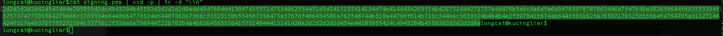 setelah itu kita coba generate lagi header.payload nya mengunakan sha256 lagi dengan mengunakan hex value yang kita dapatkan tadi dari signing.pem