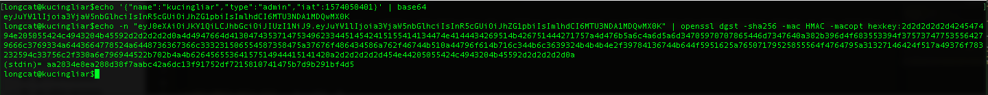 eyJ0eXAiOiJKV1QiLCJhbGciOiJIUzI1NiJ9.eyJuYW1lIjoia3VjaW5nbGlhciIsInR5cGUiOiJhZG1pbiIsImlhdCI6MTU3NDA1MDQwMX0K.qig06OoojTj3qrxCptwT-RdS33IVgQdBR1t9mykb9NU