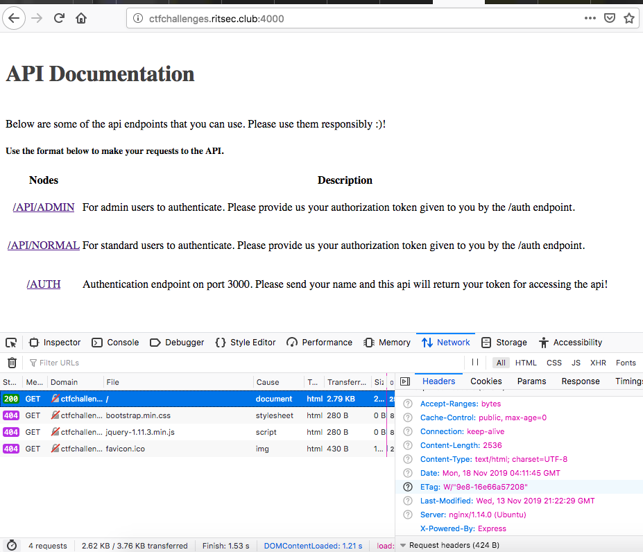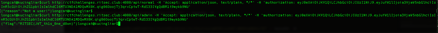 1. http://ctfchallenges.ritsec.club:4000/api/admin