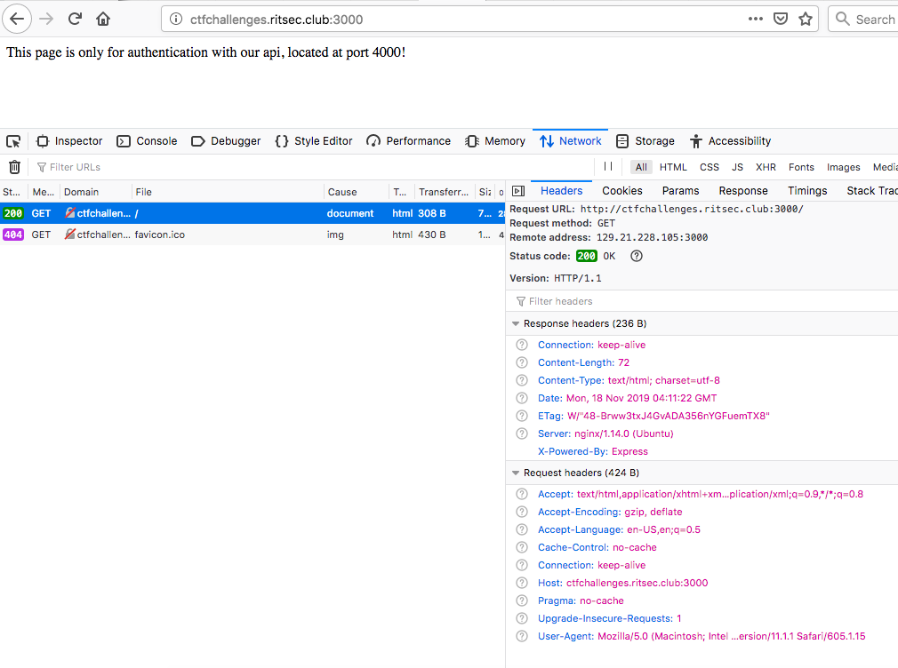 kemudian kita coba check http://ctfchallenges.ritsec.club:3000